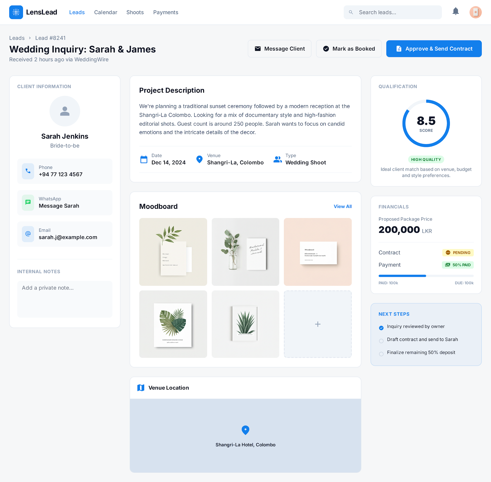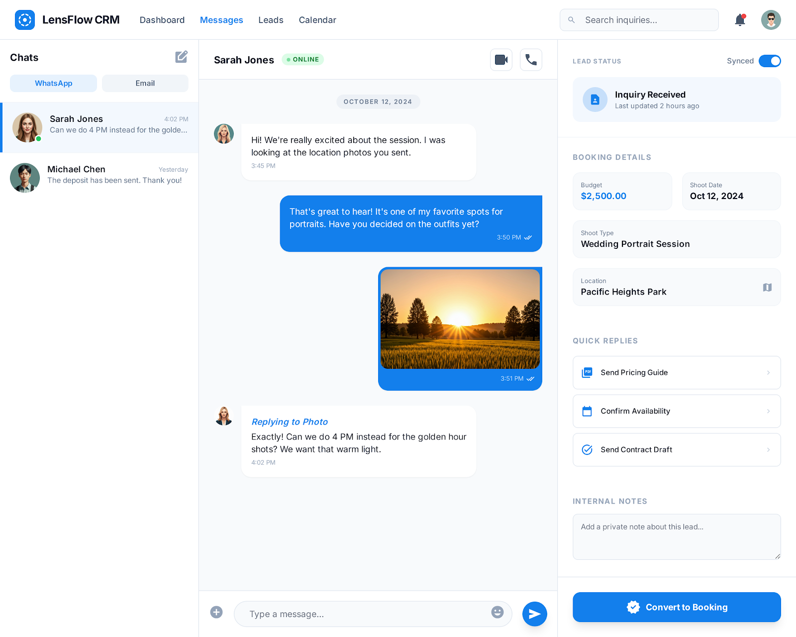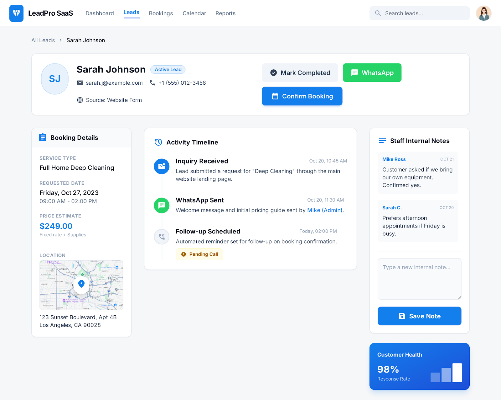 Leads scattered across WhatsApp, Instagram, and sticky notes.